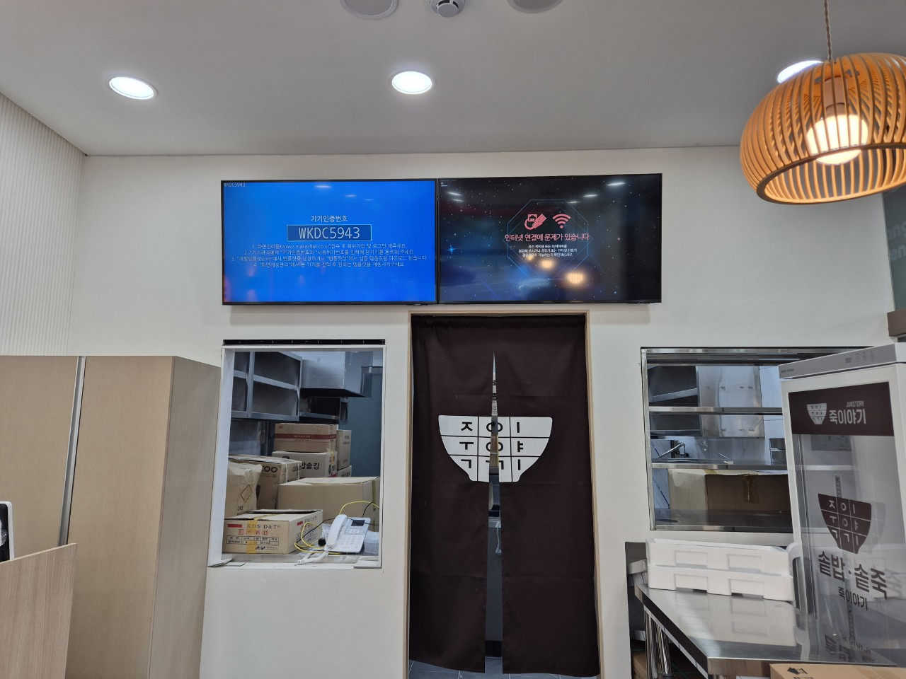 특히 매장 상단에 나란히 설치된 DID 모니터는 밝고 선명한 화질 덕분에 다양한 메뉴 이미지를 실제보다 더 맛있게 보여줄 수 있습니다. 신메뉴 홍보, 프로모션 안내, 브랜드 캠페인 등도 즉각적으로 업데이트할 수 있어, 죽이야기 본사 차원에서도 브랜드 통일성을 유지하는 데 큰 도움이 됩니다.