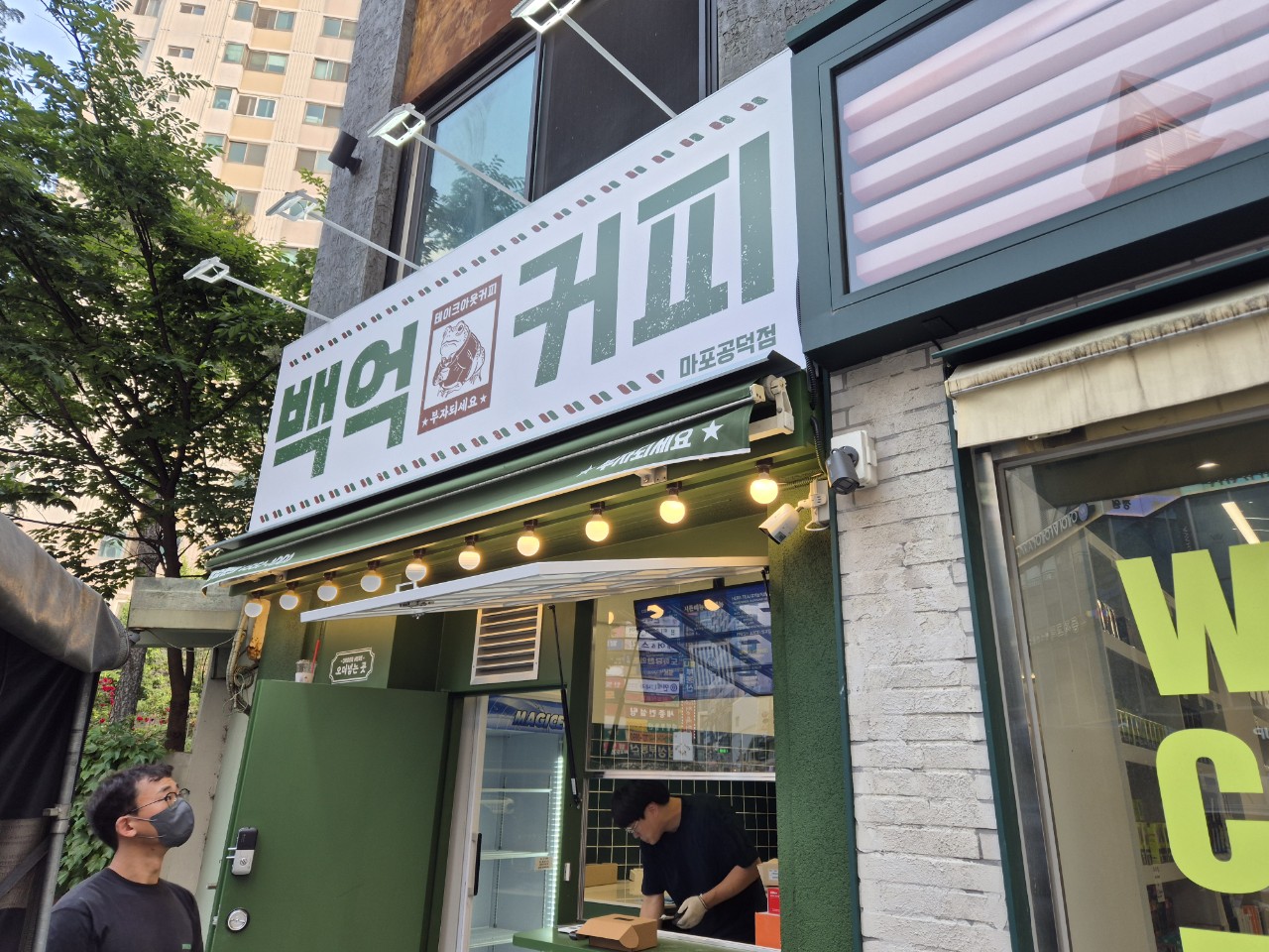 백억커피 마포공덕점 외부향 윈도우페이싱 DID 설치