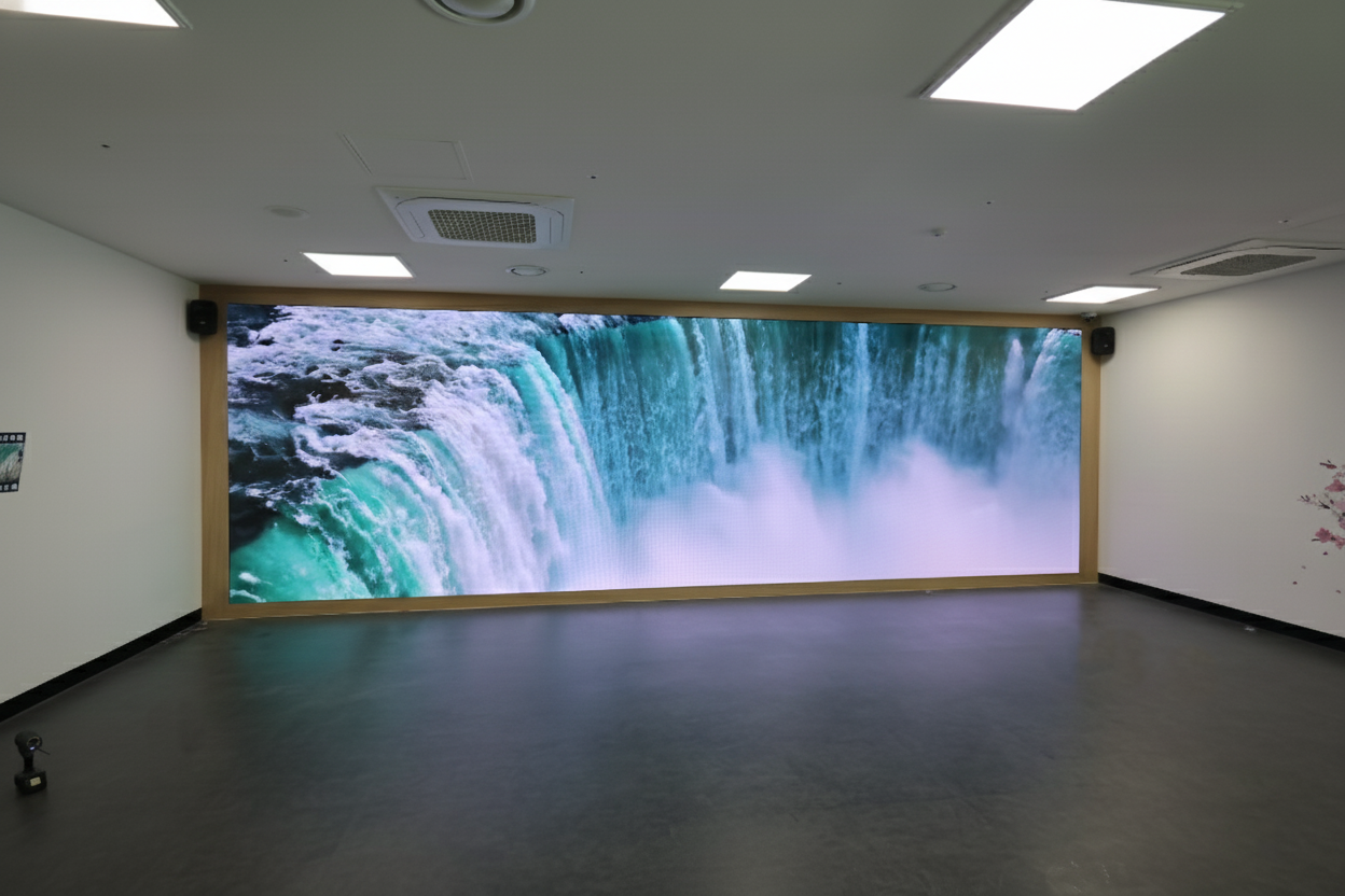 부산 강서구청 열린문화센터 P2.5 8m×2.8m LED 미디어월 설치 사례