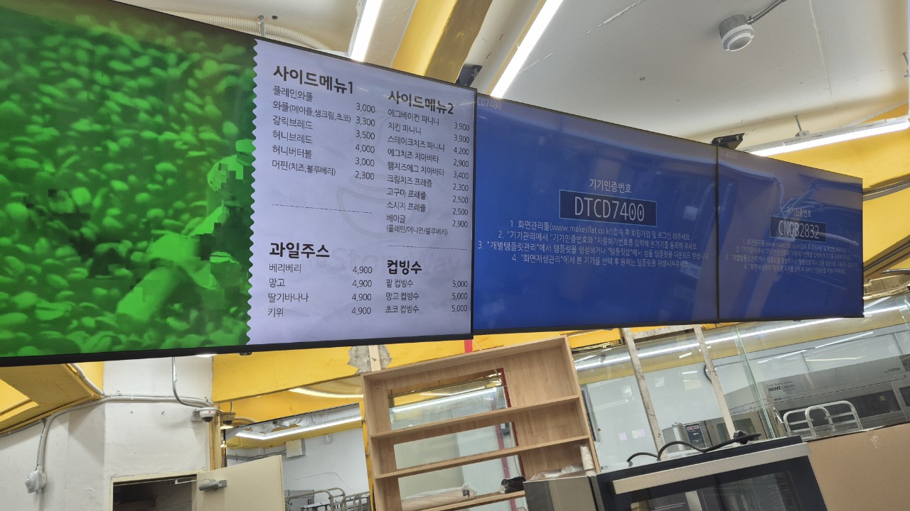 설치형 사이니지/음식점/인천시 앙호두 인천점 천장형 디지털메뉴보드 설치사례