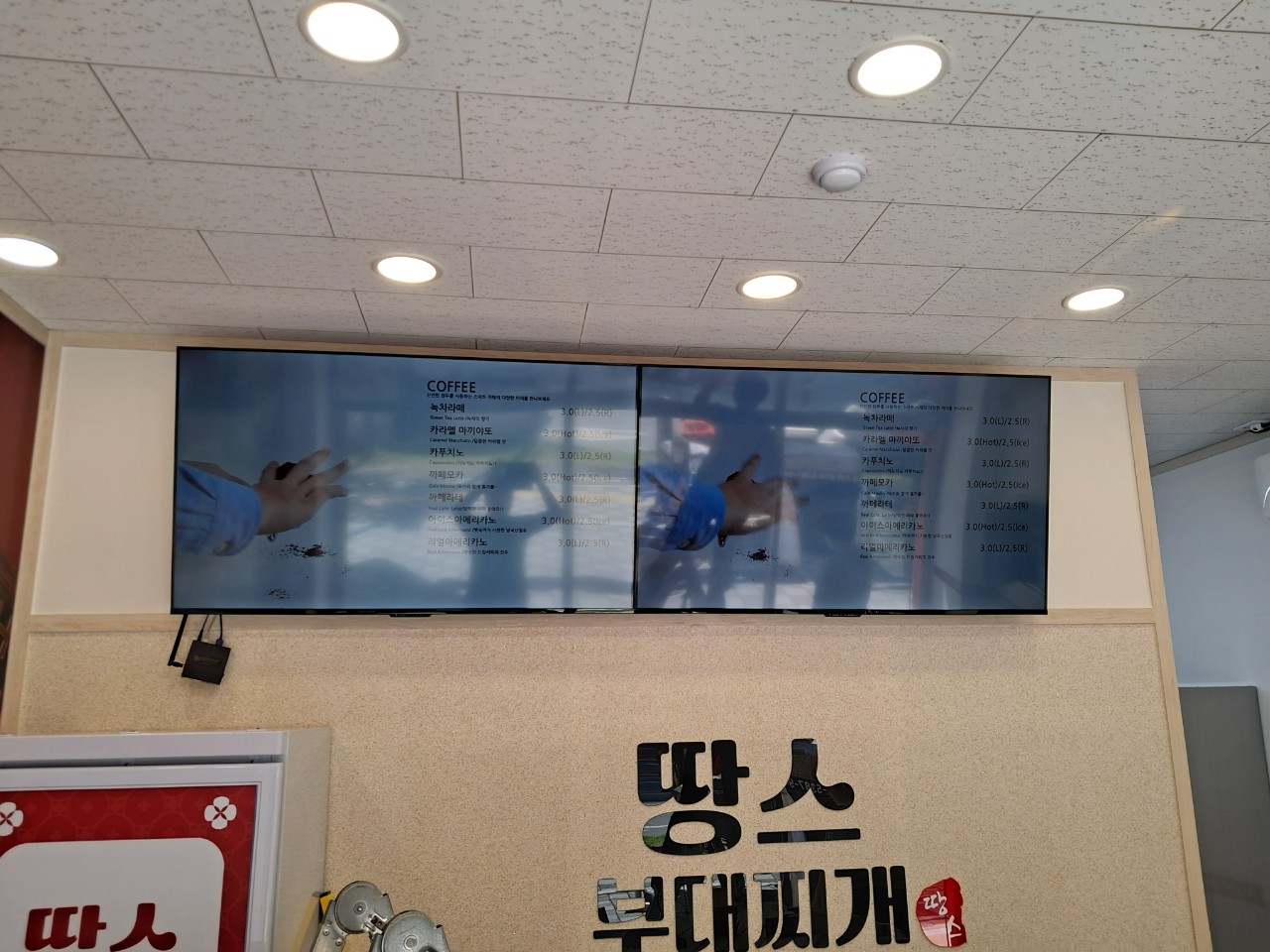 설치형 사이니지/음식점/경북 땅스부대찌개 경북도청점, 스마트플랫 55인치 솔루션형 DID 벽면 설치